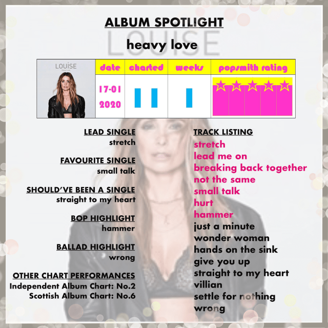 Heavy Love is pop music at its finest and a delightful welcome back to Louise. It is a challenge to imagine any other pop album being quite this good in 2020.