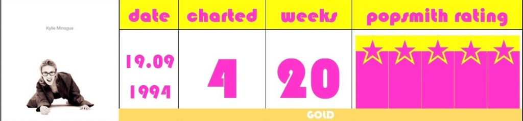 Taken from the Gold selling album ‘Kylie Minogue’ , which delivered a brand new sound and was her first under a new contract with Deconstruction, which peaked at No.4 on the UK Album Chart.