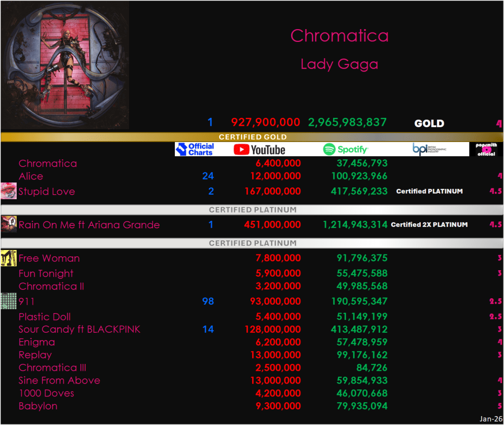 lady gaga album stats THE POP BLUEPRINT Share this: Share on X (Opens in new window) X Share on Facebook (Opens in new window) Facebook Like Loading...